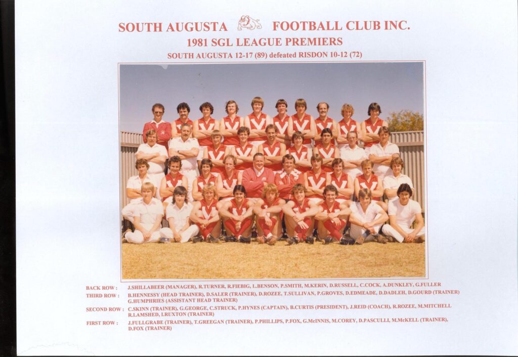 The start of the 1980’s era bought great excitement to the club with the signing of John Reid as coach of the A Grade for the 1980 season. Reid who coached South Adelaide B Grade to a premiership in 1979 moved to Port Augusta working in Consumer Affairs and with some swift work by Bruce Curtis and David Shillabeer saw him replace Pat Hynes as senior coach in a mutual agreement. Reid was to stay with the club for 3 years and ended up making the finals each year and winning an A Grade premiership in 1981 and coming second in 1982. Reid changed the SGL forever with his tactics, pre-season training regime and preparation for games including walking to the oval after changing at the club, motivational speeches and his reactions to losing, never to be forgotten by anyone who played under him. Reid bought players to the club who where prepared to put in the hard yards, Reid would often push punishing pre-seasons on his players to ensure they were fit and fully prepared for the year ahead. Reid commented that he believed his teams would have been the fittest in the history of the SGL, and it’s hard to argue with the results that came with it.