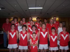 Long term injuries to experienced premiership players in Chris Heritage, Jarrod Waterworth, and Mick Maloney hit the club hard in 2002 and together with the loss of players such as Jess Rivers, Alan Margatich, Shane Jones and Travis Hoffmann the club finished 5th. Highlights for the year included the U15’s coached by Robert Laube winning the premiership undefeated and the Best and Fairest being awarded to Kevin Harris for third time. Sadly 2002 wasn’t all great, Kent Voight, a premiership player in 2000 passed away in a farming accident and the club lost one of its most respected people, the players forming a guard of honour at the funeral and many were effected by the loss.