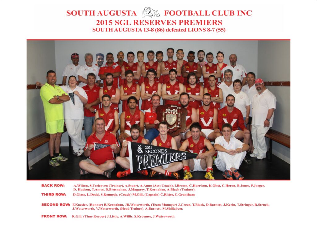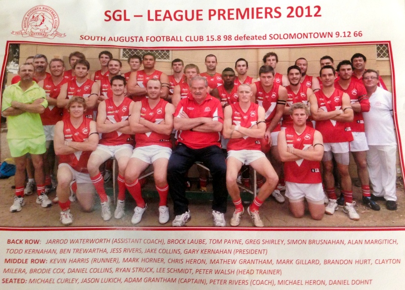 A grade players from South Augusta who played the SGL game this season were Caleb Ritter, Billy-Jo Russell, Trent Ritter, James Weir, Paul Glass, Stefan Horner, Clayton Milera, Ethan Reid, Jamahl McKenzie, Darcy Kildea and Coach Kriston Thompson